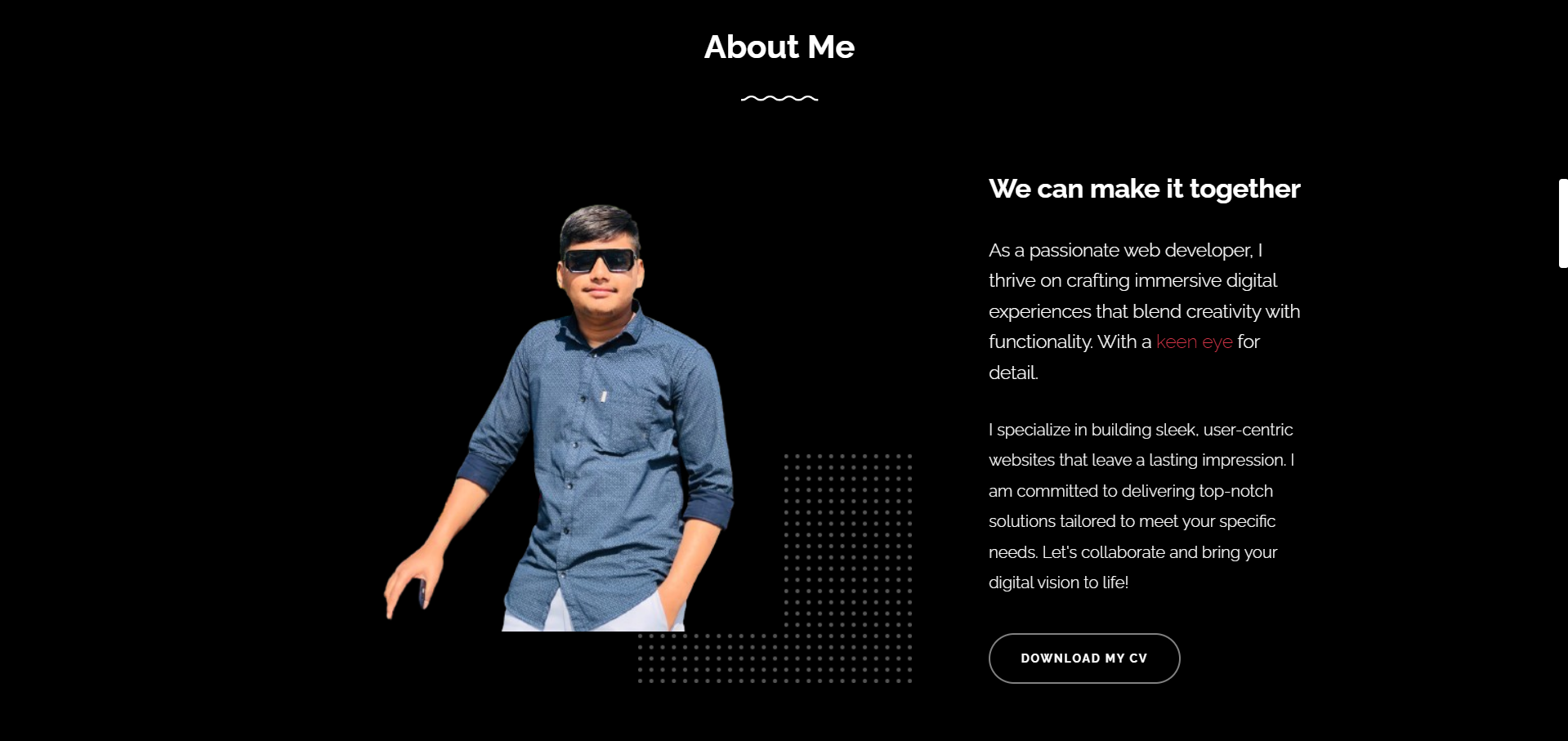 I'm thrilled to unveil Jay Kalal's portfolio website, a testament to his expertise in web development. Jay's meticulous attention to detail shines through in every aspect of the site, from its intuitive navigation to its striking aesthetics. With a focus on delivering a seamless user experience, Jay has crafted a platform that showcases his talent and professionalism. Explore his impressive body of work and discover the passion and creativity that define Jay's approach to web development